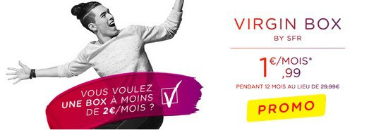 - Virgin Box (1.99€) + forfait mobile 24/24 + 100Mo de 4G (3.99€) =5.98€/mois pendant un an