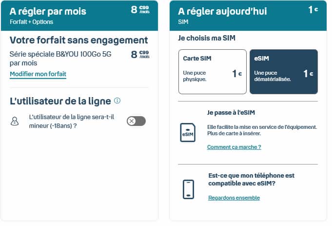 Forfaits B&You et eSIM
